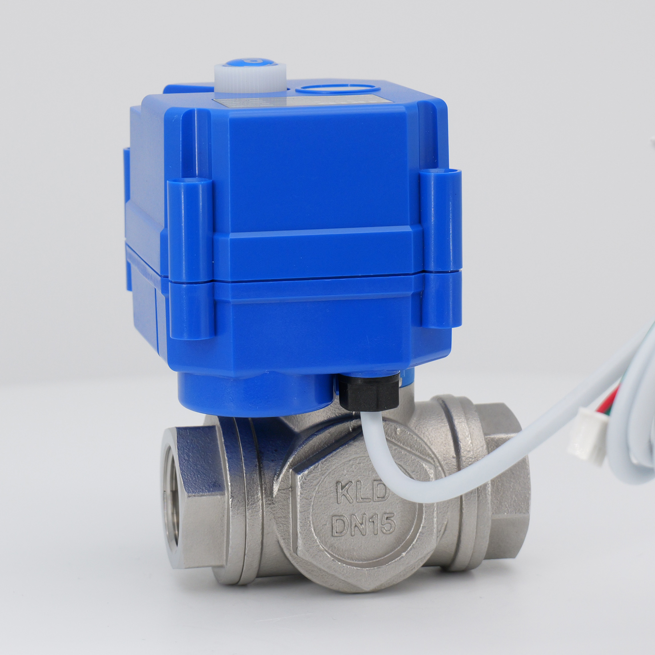 La valvola a tre vie elettriche KLD 20S, di tipo B, è progettata per applicazioni di apparecchiature su piccola scala. Presenta una dimensione compatta, una struttura a guarnizione brevettata e una lunga durata da 70.000 a 100.000 cicli. Con la corrente di funzionamento basso, è adatto per sistemi a batteria. La valvola ha una valutazione di protezione IP67. La funzione di override manuale è disponibile, è molto sicura quando si verificano errori di corrente e conveniente per gli utenti. Se non è necessario per la sostituzione manuale, è possibile scegliere la serie 20SJ. Orizzontale a 3 vie può avere una porta t, porta con varie direzioni di flusso. 3 posizioni o 4 posizioni a 3 vie sono il nostro design unico e risolve la difficoltà del settore. 3-vie orizzontale ha una portata maggiore e più intervalli di dimensioni della valvola rispetto a 3 vie verticali, è possibile scegliere il tipo di valvola di cui hai bisogno. Ma per 3 vie B, c'è una miscelazione media durante la rotazione della sfera della valvola, se ti dispiace, puoi invece scegliere A 3 vie.